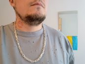 Full-fledged chain. Very popular among men «Ramses weaving», this weaving can also be seen on the Internet under the name «Double reverse Bismarck». Especially men's attention is attracted by thick silver chains of the weave «Double reverse Bismarck» with sizes close to the size in the photo. Nevertheless you can adjust almost any of parameters to your liking. There is also a choice of black or rhodium plated chains.