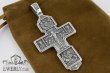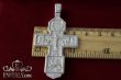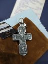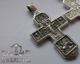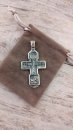 Зображено на хресті: Розп'яття Христове з майбутніми. Свята Трійця. Архангел Михаїл. Святі Воїни. Тихвинська ікона Божої Матері. Православний хрест з чорнінням.Висота: 8 мм